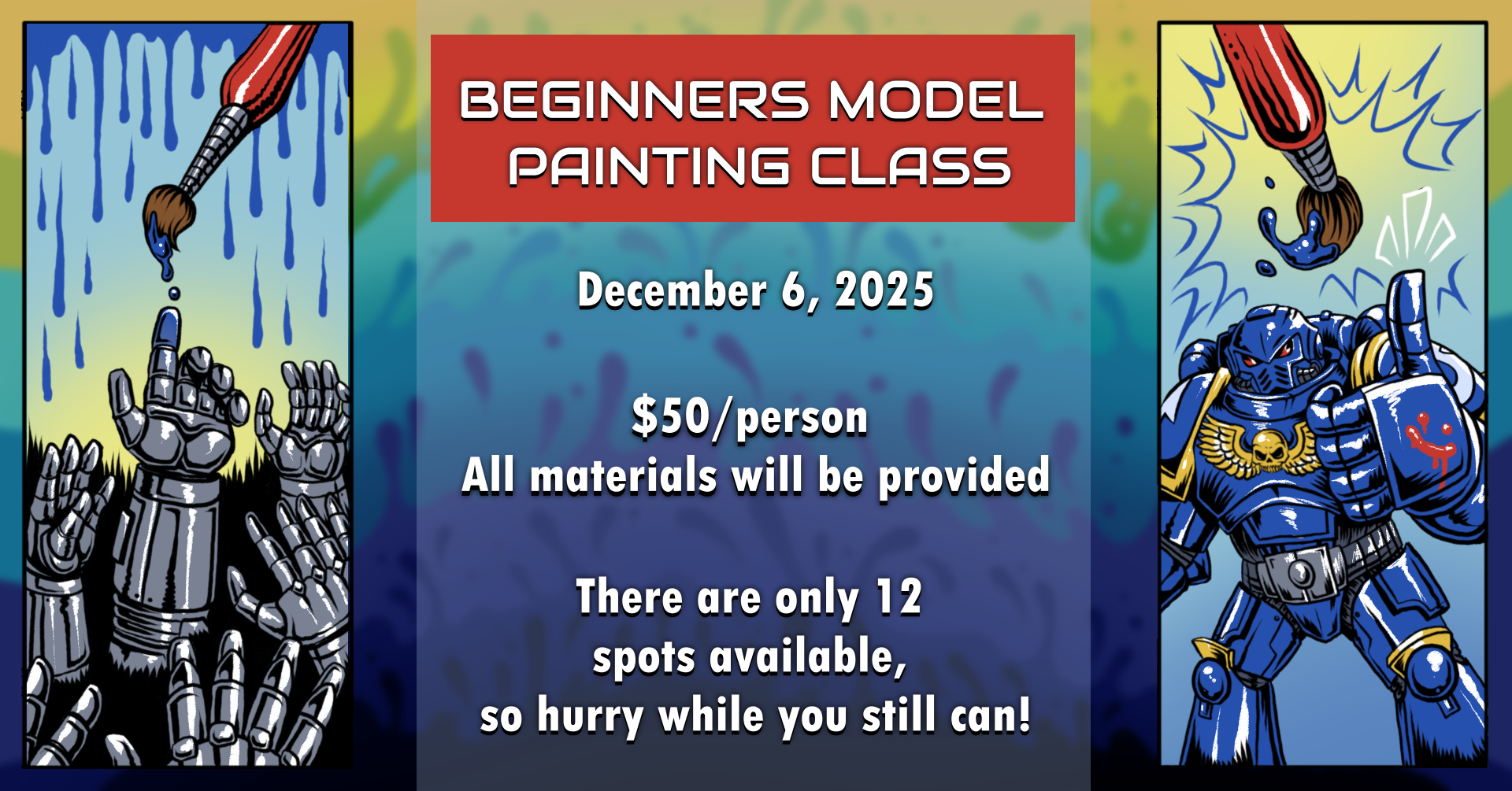 We will be painting a Primaris Infernus Space marine. The fee includes all the materials needed, of which you can keep all of it.